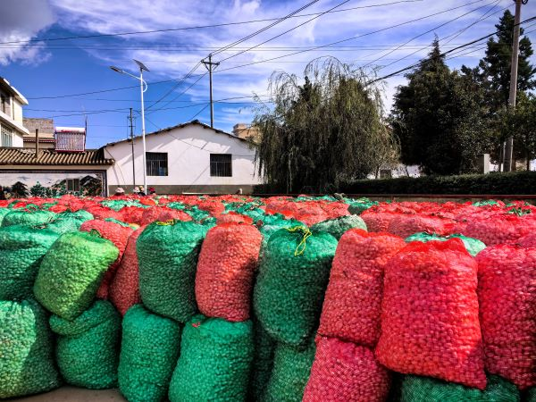 10月31日,走進(jìn)花紅柳綠,風(fēng)景如畫的祥云縣劉廠鎮(zhèn)松梅村,在村委會(huì)大門正對(duì)著的籃球場(chǎng)上,近20噸的蠶繭一袋挨著一袋,如紅、綠、白鑲嵌的圖騰,占據(jù)了大半個(gè)籃球場(chǎng)。