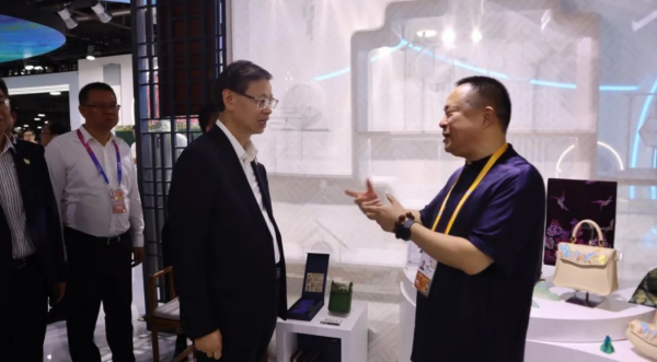 隨后,江蘇省商務(wù)廳副廳長(zhǎng)吳海云蒞臨上久楷宋錦展位參觀指導(dǎo),對(duì)宋錦的品質(zhì)和歷史傳承給予了高度評(píng)價(jià)。
