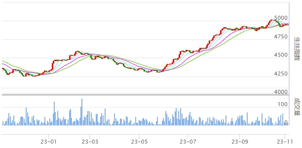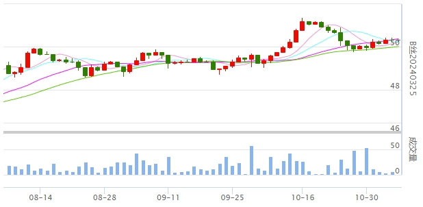 今日(2023年11月06日,周一)中國(guó)繭絲綢交易市場(chǎng)生絲指數(shù)微漲0.01%收于4955.01點(diǎn)。B絲(商檢4A級(jí)生絲):231125合約報(bào)平收于49.86萬(wàn)元;240325合約報(bào)平收于50.34萬(wàn)元;240925合約上漲0.03萬(wàn)元報(bào)收于48.48萬(wàn)元。