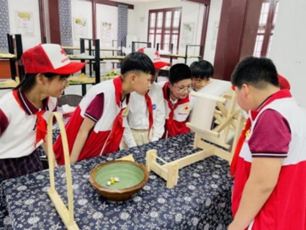 成立了無(wú)錫市天一第三實(shí)驗(yàn)小學(xué)“紅領(lǐng)巾蠶桑文化研究院”,無(wú)錫絲綢協(xié)會(huì)有二位多年從事絲綢人士受聘“輔導(dǎo)院士”。無(wú)錫西漳蠶桑展覽館為學(xué)校教育實(shí)踐基地,學(xué)生定期參與桑園除草、桑樹剪技、采桑養(yǎng)蠶、收繭繅絲等體驗(yàn)活動(dòng),感知和了解蠶桑絲綢文化的內(nèi)涵。同時(shí)尋訪無(wú)錫絲密斯科技有限公司,深入“絲密斯化妝品”生產(chǎn)現(xiàn)場(chǎng),了解蠶絲的成分和拓展應(yīng)用。當(dāng)江蘇蘇豪絲線實(shí)業(yè)有限公司的馬瑞青被評(píng)為全國(guó)紡織工業(yè)勞動(dòng)模范,學(xué)校組織學(xué)生探尋勞模精神,以“外科手術(shù)縫合線的編織天使”馬瑞青為學(xué)習(xí)榜樣而命名的“馬瑞青中隊(duì)”近期被評(píng)為2023年“江蘇省少先隊(duì)英雄中隊(duì)”。