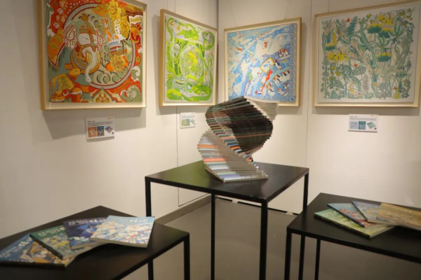 “絲畫中國(guó)”絲巾藝術(shù)展是傳統(tǒng)與現(xiàn)代、科技與藝術(shù)、學(xué)術(shù)與行業(yè)之間的深度交叉融合,展覽共展出絲巾作品56幅,包含“中國(guó)色彩教父”、著名華裔藝術(shù)家晨曉為杭州亞運(yùn)會(huì)創(chuàng)作的巨型壁畫《新富春山居圖》,以及“一帶一路”系列、“碳中和”系列、故事系列、城市系列、經(jīng)典系列五大板塊藝術(shù)絲巾。