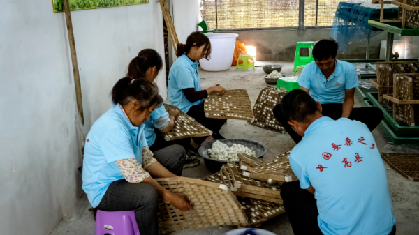 高縣專業(yè)化標(biāo)準(zhǔn)小蠶共育工廠工人作業(yè)