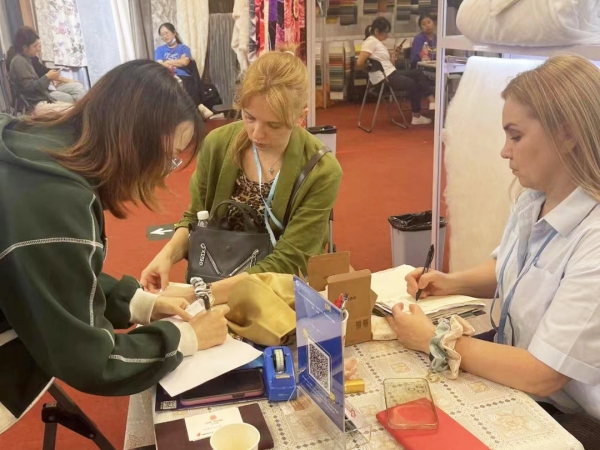 “感覺這次看展的客戶要比5月份廣交會的更有針對性,自展會開幕以來已經(jīng)有意大利、日本、韓國以及不少中東國家的20多位客戶與我們進行意向洽談了?!碧K州太湖雪絲綢股份有限公司銷售經(jīng)理曹玲告訴記者,讓她印象最深刻的是,來自“一帶一路”沿線國家的客戶特別多。