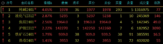 午盤收盤,國(guó)內(nèi)期貨主力合約漲跌互現(xiàn)。純堿漲超4%,液化石油氣(LPG)、焦煤(2000, 36.00, 1.83%)、滬鎳(141620, -250.00, -0.18%)漲超2%,鐵礦(949, 11.00, 1.17%)石、熱卷(3973, 24.00, 0.61%)、螺紋漲超1%;跌幅方面,紙漿跌超4%,SC原油、瀝青(3565, 1.00, 0.03%)、雞蛋(4194, -44.00, -1.04%)跌超2%。