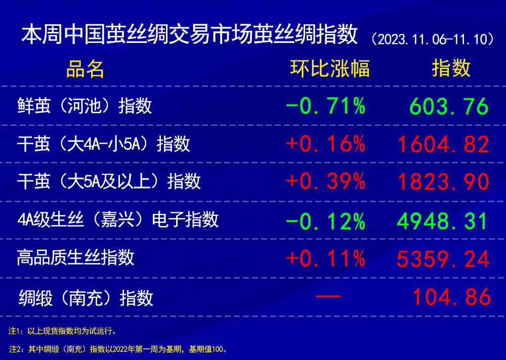 本周4A級生絲電子指數(shù)累計略跌0.12%。
