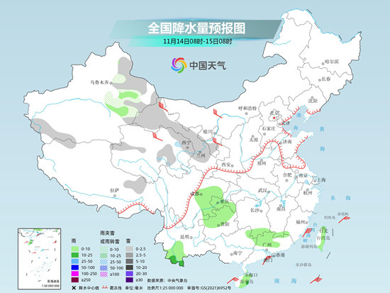 具體來看,今天,新疆沿天山地區(qū)和北疆東部、西藏東北部、青海北部和東部、甘肅大部等地部分地區(qū)有小雪或雨夾雪。西南地區(qū)東部、云南西南部、華南北部、海南島、臺灣島等地部分地區(qū)有小到中雨。