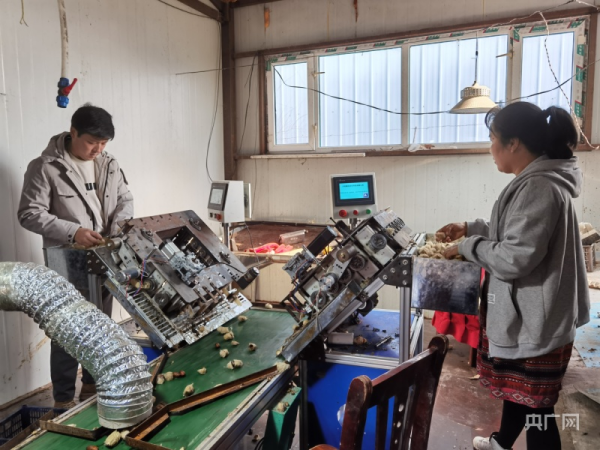 王萌(左)正在操作蠶蛹外殼切割機(jī)