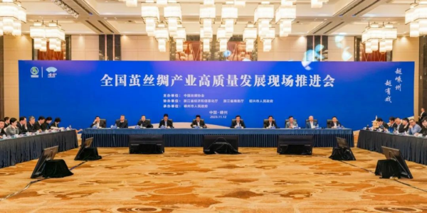 11月12日,主題為“共享‘一帶一路’機(jī)遇共促產(chǎn)業(yè)高質(zhì)量發(fā)展”的全國(guó)繭絲綢產(chǎn)業(yè)高質(zhì)量發(fā)展現(xiàn)場(chǎng)推進(jìn)會(huì)在浙江省嵊州市順利召開(kāi)。會(huì)議聚焦技術(shù)創(chuàng)新、產(chǎn)業(yè)融合、數(shù)智化轉(zhuǎn)型等內(nèi)容,共話(huà)繭絲綢產(chǎn)業(yè)的轉(zhuǎn)型升級(jí)和創(chuàng)新發(fā)展。商務(wù)部黨組成員、副部長(zhǎng)盛秋平講話(huà)。浙江省副省長(zhǎng)胡偉,中國(guó)工程院院士、浙江理工大學(xué)校長(zhǎng)陳文興、中國(guó)紡織工業(yè)聯(lián)合會(huì)副會(huì)長(zhǎng)楊兆華出席。