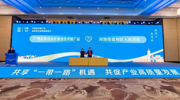 河池市人民政府副市長(zhǎng)陸景宇在發(fā)言中介紹了河池桑蠶繭絲綢產(chǎn)業(yè)發(fā)展的相關(guān)情況。2022年,河池市桑園種植面積94.41萬(wàn)畝,分別占廣西、全國(guó)的33.22%和8.07%;鮮繭產(chǎn)量18.72萬(wàn)噸,分別占廣西、全國(guó)的42.83%和25.34%,桑園面積和鮮繭產(chǎn)量連續(xù)18年穩(wěn)居全國(guó)設(shè)區(qū)市首位;全市蠶繭產(chǎn)值達(dá)105億元,占全市農(nóng)林牧漁總產(chǎn)值的23%,形成了“世界桑蠶看中國(guó)、中國(guó)桑蠶看廣西、廣西桑蠶看河池”的發(fā)展新格局。他希望各級(jí)各部門(mén)進(jìn)一步加大東綢西移和后道產(chǎn)業(yè)鏈轉(zhuǎn)移對(duì)河池的支持力度,并在繭絲綢期貨和現(xiàn)貨交易中心建設(shè),以及科技創(chuàng)新能力和人才隊(duì)伍建設(shè)等方面對(duì)河池提供更大支持。
