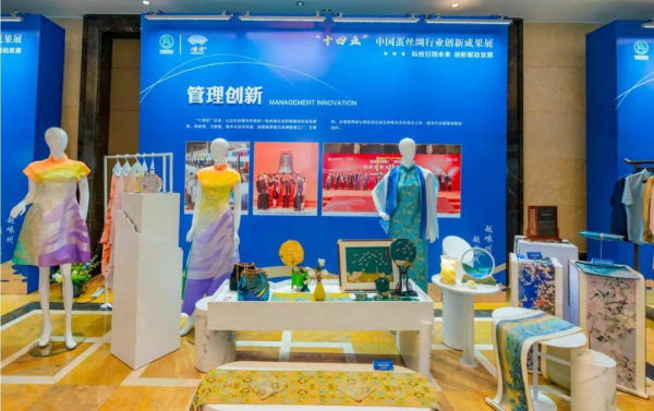為全面展示近年來(lái)繭絲綢行業(yè)產(chǎn)業(yè)鏈、供應(yīng)鏈、價(jià)值鏈協(xié)同創(chuàng)新技術(shù)成果,激發(fā)廣大絲綢企業(yè)創(chuàng)新創(chuàng)造活力,不斷塑造行業(yè)發(fā)展新動(dòng)能新優(yōu)勢(shì),受商務(wù)部國(guó)家繭絲辦委托,中國(guó)絲綢協(xié)會(huì)在“全國(guó)繭絲綢行業(yè)高質(zhì)量發(fā)展現(xiàn)場(chǎng)推進(jìn)會(huì)”期間,舉辦“十四五”中國(guó)繭絲綢行業(yè)創(chuàng)新成果展。本次展覽主要從科技創(chuàng)新、管理創(chuàng)新、產(chǎn)品創(chuàng)新、品牌創(chuàng)新、文化創(chuàng)新等五個(gè)方面,遴選行業(yè)最具代表性的成果,以文字、圖片、視頻、實(shí)物等方式進(jìn)行展示,全方位多角度展示“十四五”以來(lái)我國(guó)繭絲綢行業(yè)改革創(chuàng)新的新形象和新面貌。