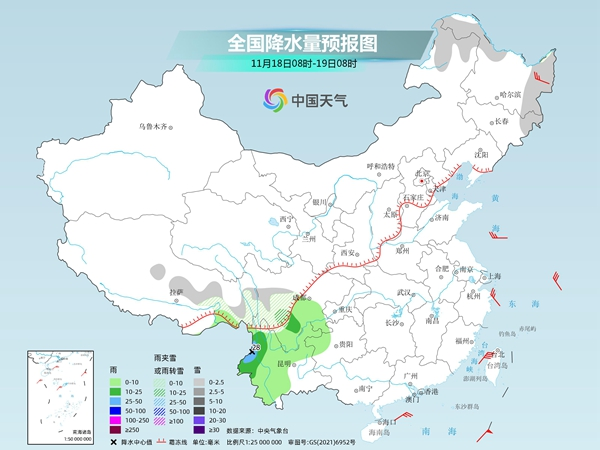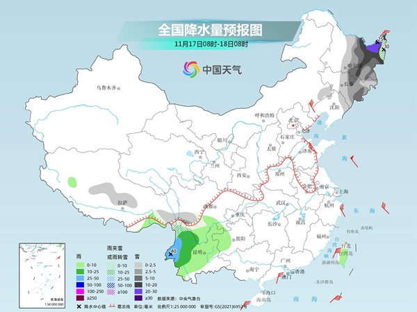 明天,內(nèi)蒙古東北部、黑龍江東部和西北部、吉林東北部、西藏東部、川西高原中南部等地部分地區(qū)有小雪或雨夾雪。四川盆地南部、貴州西部、云南中西部等地部分地區(qū)有小到中雨,其中,云南西部局地有大雨。