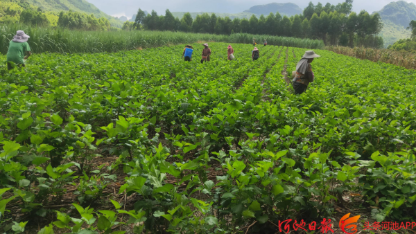 宜州旺騰生態(tài)農(nóng)業(yè)發(fā)展專業(yè)合作社工人正在采摘桑葉
