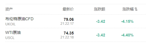 國際基準(zhǔn)價格布倫特一度大跌5.5%至每桶72.48美元,WTI原油期貨一度跌5.2%,創(chuàng)下今年以來最大單日跌幅之一,價格接近每桶77美元,雙雙跌至7月初以來的最低水平。