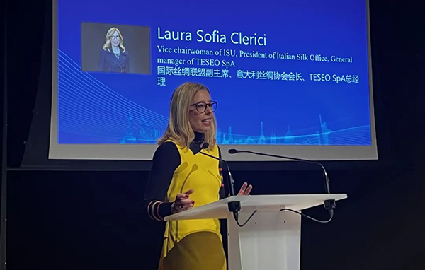 Laura Sofia Clerici從絲綢生產(chǎn)貿(mào)易數(shù)據(jù)、可持續(xù)和生命周期評(píng)價(jià)研究、絲綢宣傳推廣、絲綢質(zhì)量4個(gè)方面介紹了意大利絲綢產(chǎn)業(yè)情況。
