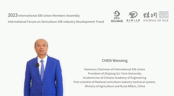 陳文興院士介紹了中國(guó)及國(guó)際絲綢產(chǎn)業(yè)的發(fā)展現(xiàn)狀,以及中國(guó)繭絲綢產(chǎn)業(yè)的發(fā)展特征和科技研究方向。