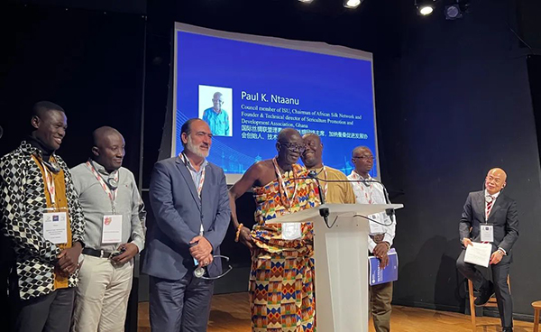 Paul K. Ntaanu介紹了非洲蠶桑絲綢產(chǎn)業(yè)、加納蠶桑業(yè)的發(fā)展現(xiàn)狀和存在的問(wèn)題,以及非洲絲綢網(wǎng)絡(luò)的成立背景和基本情況。