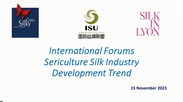 為踐行“交流合作 攜手發(fā)展”的宗旨,11月15日,受國(guó)際絲綢聯(lián)盟副主席單位法國(guó)紡織企業(yè)聯(lián)合會(huì)(UNITEX)的邀請(qǐng),“2023國(guó)際絲綢聯(lián)盟成員大會(huì)暨國(guó)際桑蠶絲綢產(chǎn)業(yè)發(fā)展趨勢(shì)論壇”在法國(guó)“里昂絲綢節(jié)”期間成功召開(kāi)。會(huì)議審議了國(guó)際絲綢聯(lián)盟第二屆理事會(huì)工作報(bào)告、選舉產(chǎn)生了新一屆組織機(jī)構(gòu)、探討了未來(lái)工作規(guī)劃及發(fā)展方向,并就各國(guó)蠶桑絲綢產(chǎn)業(yè)發(fā)展現(xiàn)狀、國(guó)際絲綢產(chǎn)業(yè)綠色可持續(xù)及發(fā)展新趨勢(shì)等議題開(kāi)展主題研討。