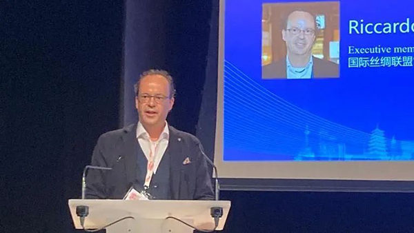 Riccardo Pfenninger介紹了歐洲時(shí)尚產(chǎn)業(yè)在有機(jī)認(rèn)證、循環(huán)回收、公平貿(mào)易、生命周期評(píng)價(jià)、可再生農(nóng)業(yè)等方面的挑戰(zhàn)和發(fā)展趨勢(shì),希望加強(qiáng)交流合作,促進(jìn)絲綢產(chǎn)業(yè)的可持續(xù)發(fā)展。