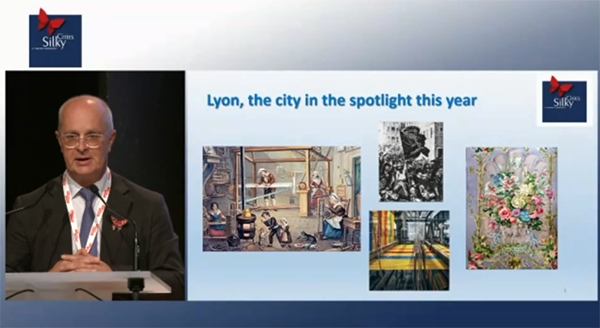 Xavier de la Selle為大會(huì)致辭。他向絲綢行業(yè)同仁齊聚法國(guó)里昂表示歡迎,并介紹了法國(guó)絲綢之都——里昂的發(fā)展歷史,以及法國(guó)里昂加達(dá)涅博物館的基本情況和正在展出的展覽。希望通過(guò)此次會(huì)議,增進(jìn)各國(guó)絲綢產(chǎn)業(yè)的交流,促進(jìn)絲綢產(chǎn)業(yè)的健康可持續(xù)發(fā)展。
