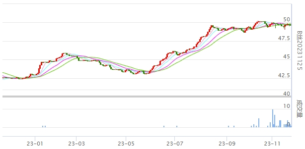 今日(2023年11月23日,周四)中國繭絲綢交易市場生絲指數(shù)下跌0.23%收于4971.56點。B絲(商檢4A級生絲):231125合約下跌0.03萬元報收于49.65萬元;240325合約下跌0.09萬元報收于50.79萬元;240925合約下跌0.15萬元報收于48.99萬元。今日盤面A絲合約價格繼續(xù)小幅上漲。
