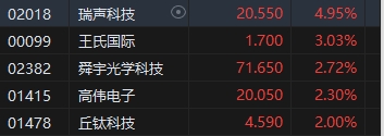 電子零件板塊漲幅居前,瑞聲科技漲近5%。高盛發(fā)表報告指,全球手機出貨量改善的趨勢,將會持續(xù)至第四季及以后,支持供應(yīng)鏈庫存維持健康水平,為新型號的推出提供空間。該行對瑞聲維持積極看法,因為現(xiàn)金流健康、手機鏡頭及模組的出貨量及毛利率改善、發(fā)展汽車部件業(yè)務(wù)、產(chǎn)品線擴充。