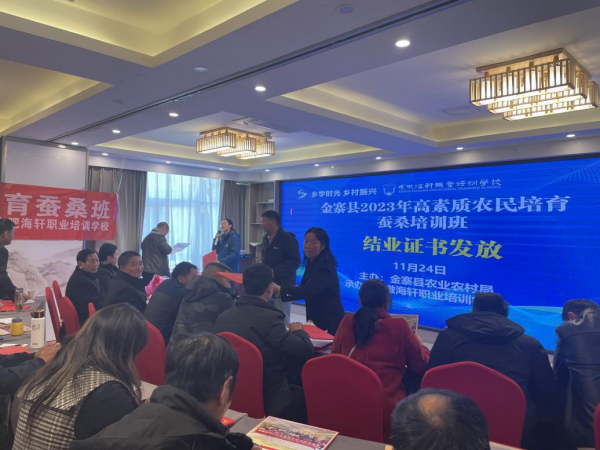 安徽省金寨縣2023年高素質(zhì)農(nóng)民培育蠶桑培訓班于11月24日圓滿結(jié)業(yè)。此次培訓內(nèi)容豐富、分階段分專業(yè)重實訓,既積極提升學員專業(yè)知識,又重視開拓學員眼界思路,讓學員切實感受到金寨縣政府對蠶桑行業(yè)的重視,增強了信心,為進一步推進金寨蠶桑產(chǎn)業(yè)高質(zhì)量發(fā)展打下基礎。