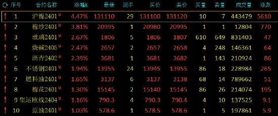 午盤收盤,國內(nèi)期貨主力合約互有漲跌。滬鎳(133850, 3780.00, 2.91%)漲超4%,棉紗漲近4%,玻璃(1773, -13.00, -0.73%)、燒堿、瀝青(3676, 24.00, 0.66%)漲超2%。跌幅方面,碳酸鋰、紙漿跌超3%,雞蛋(4230, -24.00, -0.56%)、焦煤(2048, -71.00, -3.35%)、20號膠(NR)、橡膠(13650, -165.00, -1.19%)、丁二烯橡膠(BR)、棕櫚(7298, -28.00, -0.38%)油跌超2%。