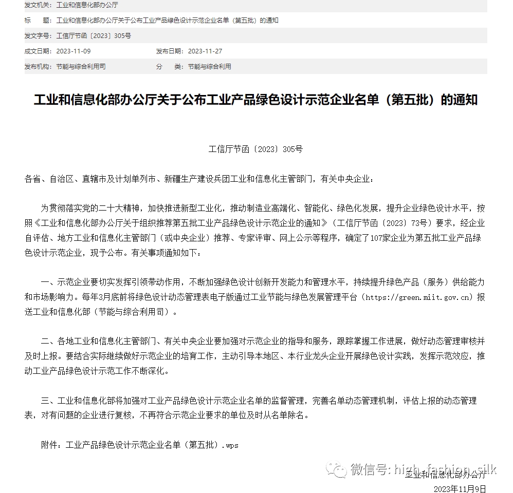 絲企榮譽(yù)丨達(dá)利絲綢榮獲工信部工業(yè)產(chǎn)品綠色設(shè)計(jì)示范企業(yè)