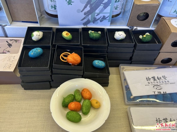 “酒店的屋頂和屋檐都采用了絲綢設(shè)計(jì),還有入戶處擺放的來自民間的老式織布機(jī),意在突出一個(gè)桑蠶元素?!眴握讉フf,這些絲綢和文化元素的注入,讓游客在丁埠找到了不一樣的感覺,一些用蠶桑和蠶繭制作而成的文創(chuàng)產(chǎn)品更是贏得了人們的青睞。
