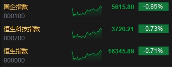 12月7日消息,港股三大指數(shù)尾盤跌幅小幅收窄,截至收盤,恒生指數(shù)(16345.89, -117.37, -0.71%)跌0.71%,報16345.89點,恒生科技指數(shù)(3720.21, -27.37, -0.73%)跌0.73%,國企指數(shù)跌0.85%。盤面上,核心科技股普跌,快手、騰訊控股(307.8, -3.80, -1.22%)跌超1%,百度、阿里巴巴、網(wǎng)易跟跌,京東微漲;光伏股跌幅靠前,信義光能(4.18, -0.20, -4.57%)跌超4%;體育用品股齊跌 ,安踏體育(74.05, -1.95, -2.57%)跌超2%;石油股全天低迷,中石油、中海油(12.46, -0.34, -2.66%)跌超2%;蘋果概念股部分上漲,瑞聲科技(21.15, 0.60, 2.92%)漲近3%;醫(yī)藥、電力、食品等板塊飄紅。