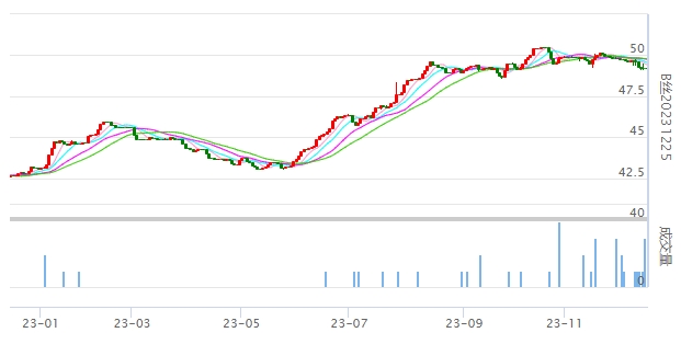 今日(2023年12月15日,周五)中國(guó)繭絲綢交易市場(chǎng)生絲指數(shù)下跌0.07%收于4928.00點(diǎn),本周生絲指數(shù)下跌0.73%。B絲(商檢4A級(jí)生絲):231225合約報(bào)平收于49.23萬(wàn)元;240325合約報(bào)平收于50.28萬(wàn)元;240925合約上漲0.03萬(wàn)元報(bào)收于48.51萬(wàn)元。