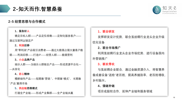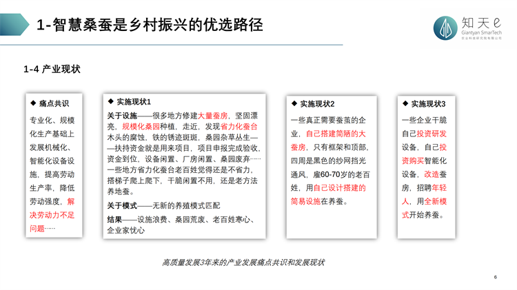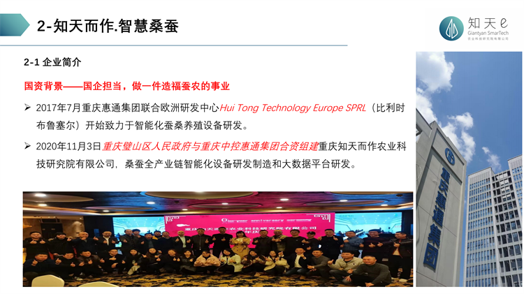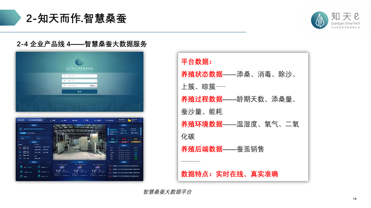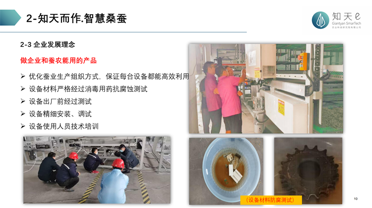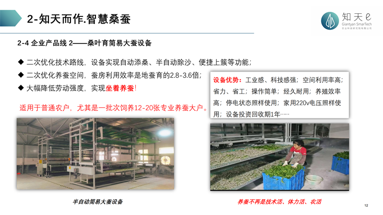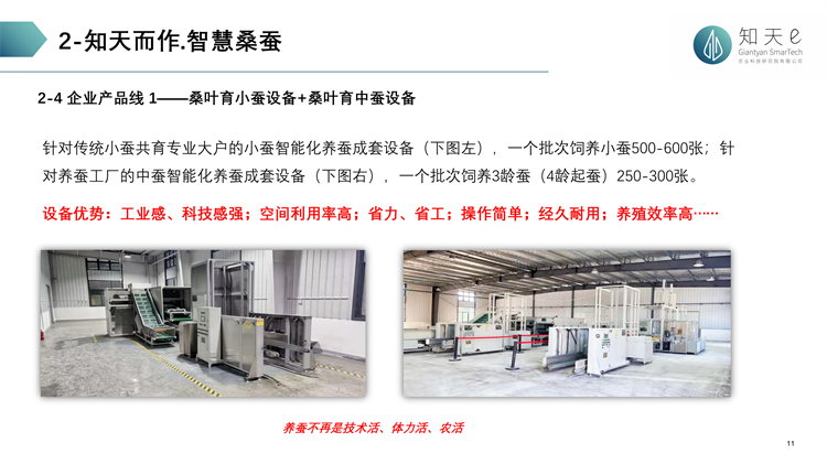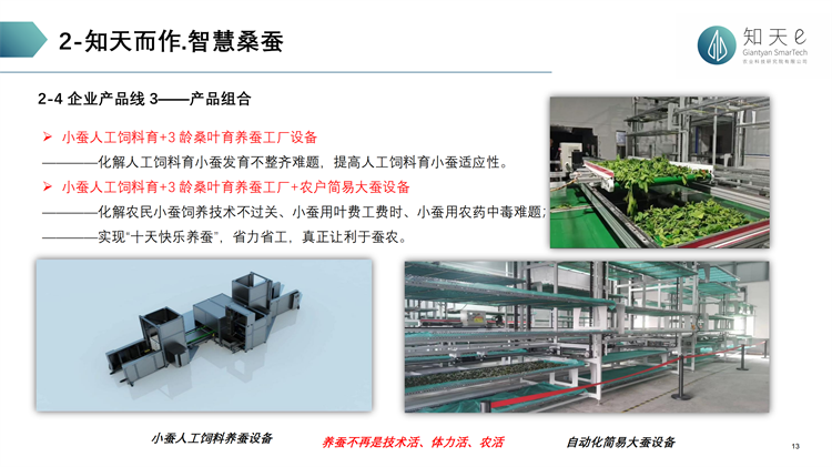她介紹了知天而作的公司業(yè)務(wù)、發(fā)展理念、以及產(chǎn)品線,1小蠶桑葉育設(shè)備+中蠶桑葉育設(shè)備,2大蠶桑葉育設(shè)備,3小蠶人工飼料育+3齡桑葉育養(yǎng)蠶工廠設(shè)備和小蠶人工飼料育+3齡桑葉育養(yǎng)蠶工廠+簡易大蠶設(shè)備,4智慧桑蠶大數(shù)據(jù)服務(wù)。