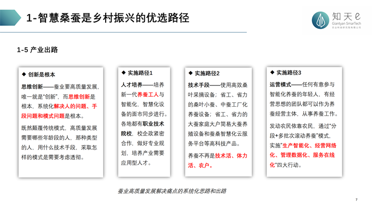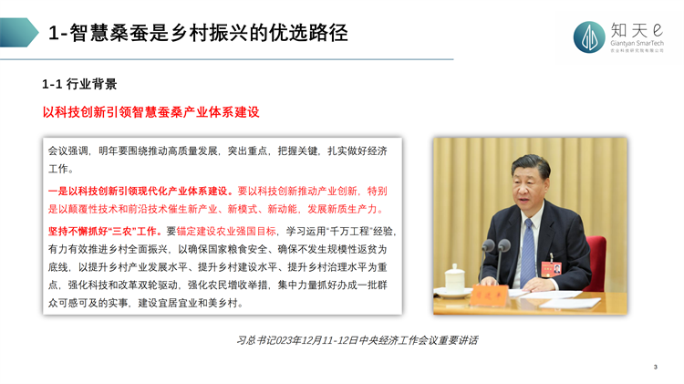 她表示,智慧桑蠶是鄉(xiāng)村振興的優(yōu)選路徑,其后她在以下幾個方面做了重點闡述:一以科技創(chuàng)新引領(lǐng)智慧桑蠶產(chǎn)業(yè)體系建設(shè),二蠶業(yè)在全面推進鄉(xiāng)村振興中的優(yōu)勢顯著,三鄉(xiāng)村振興需要發(fā)展專業(yè)化規(guī)模化蠶桑產(chǎn)業(yè),四專業(yè)化規(guī)?;Q業(yè)依靠于機械化、智慧化實現(xiàn)。她從產(chǎn)業(yè)現(xiàn)狀、產(chǎn)業(yè)出入等方面具體分析。