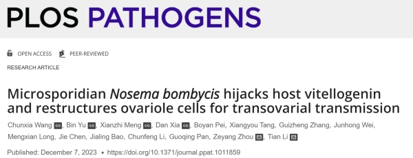 近日,資源昆蟲高效養(yǎng)殖與利用全國重點實驗室李田研究員課題組在微生物學(xué)Top期刊PLoS Pathogens在線發(fā)表了題為“Microsporidian Nosema bombycis hijacks host vitellogenin and restructures ovariole cells for transovarial transmission”的研究論文,揭示了家蠶微粒子蟲侵入家蠶卵母細(xì)胞的時間、路徑、形態(tài)、策略和關(guān)鍵分子機(jī)制。