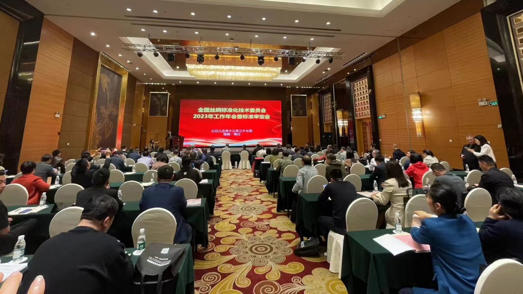 12月27日,全國絲綢標(biāo)準(zhǔn)化技術(shù)委員會2023年工作年會暨標(biāo)準(zhǔn)審定會于海南省海口市順利召開。來自絲綢企業(yè)、檢驗(yàn)機(jī)構(gòu)、行業(yè)協(xié)會、高等院校、科研院所等單位的委員、觀察員和參會代表等一百多人參會。會議由全國絲綢標(biāo)委會副主任、浙江凱喜雅國際股份有限公司副總裁兼浙江絲綢科技公司董事長兼總經(jīng)理駱炳華主持。