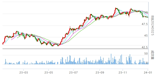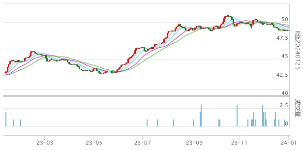 今日(2024年1月2日,周二)中國繭絲綢交易市場生絲指數(shù)微跌0.1%收于4861.97點(diǎn)。B絲(商檢4A級(jí)生絲):240125合約微跌0.03萬元收于48.87萬元;240325合約報(bào)平收于49.26萬元;240925合約微跌0.09萬元報(bào)收于48萬元。