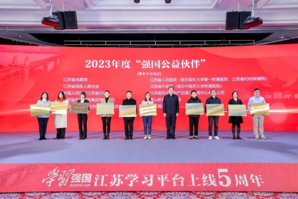 12月30日,由新華日?qǐng)?bào)、“學(xué)習(xí)強(qiáng)國(guó)”江蘇學(xué)習(xí)平臺(tái)、“新江蘇”、中國(guó)江蘇網(wǎng)主辦的“學(xué)習(xí)強(qiáng)國(guó)”江蘇學(xué)習(xí)平臺(tái)上線5周年活動(dòng)在南京舉行。江蘇省政協(xié)副主席姚曉東出席,并為2023年度強(qiáng)國(guó)公益伙伴授牌。集團(tuán)黨委副書(shū)記陳萬(wàn)寧應(yīng)邀參加活動(dòng)。