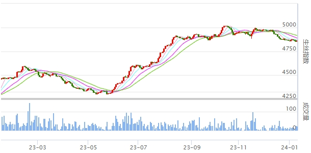 今日(2024年01月10日,周三)中國(guó)繭絲綢交易市場(chǎng)生絲指數(shù)上漲0.15%收于4862.70點(diǎn)。B絲(商檢4A級(jí)生絲):240125合約上漲0.09萬元收于48.93萬元;240325合約上漲0.15萬元收于49.35萬元;240925合約上漲0.12萬元收于48.00萬元。