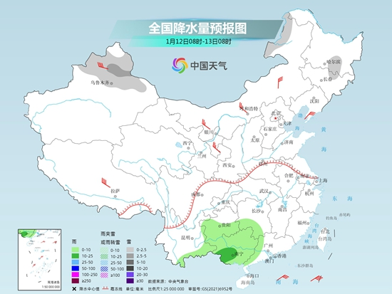 明天,新疆南疆西部山區(qū)、內(nèi)蒙古東部、東北地區(qū)大部、山東半島等地的部分地區(qū)有小到中雪或雨夾雪,其中,遼寧東部局地有大雪。四川盆地東部、湖南大部、云南東南部、廣西等地的部分地區(qū)有小雨,局地有中雨。