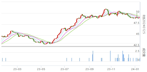 今日(2024年01月12日,周五)中國繭絲綢交易市場(chǎng)生絲指數(shù)上漲0.18%收于4871.01點(diǎn),本周生絲指數(shù)微跌0.04%。B絲(商檢4A級(jí)生絲):240125合約上漲0.06萬元收于49.02萬元;240325合約上漲0.06萬元收于49.35萬元;240925合約上漲0.15萬元收于48.12萬元。