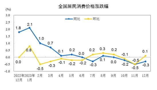 1月12日,國家統(tǒng)計(jì)局網(wǎng)站最新發(fā)布的數(shù)據(jù)顯示,2023年12月份,全國居民消費(fèi)價(jià)格同比下降0.3%。2023年全年,全國居民消費(fèi)價(jià)格比上年上漲0.2%。