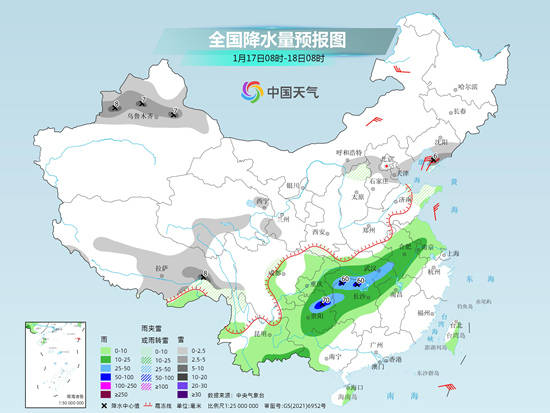 未來(lái)三天(1月17日至19日),中東部大范圍雨雪仍在持續(xù),其中西南地區(qū)東部、江漢、江淮等地雨勢(shì)較強(qiáng),局地或有暴雨。氣溫方面,今天中東部大部氣溫還將繼續(xù)回升,尤其是江南南部等地最高氣溫可達(dá)20℃或以上,暖意融融,不過(guò)明天起,冷空氣將給各地陸續(xù)帶來(lái)降溫,本周末中東部將上演冷暖大逆轉(zhuǎn)。
