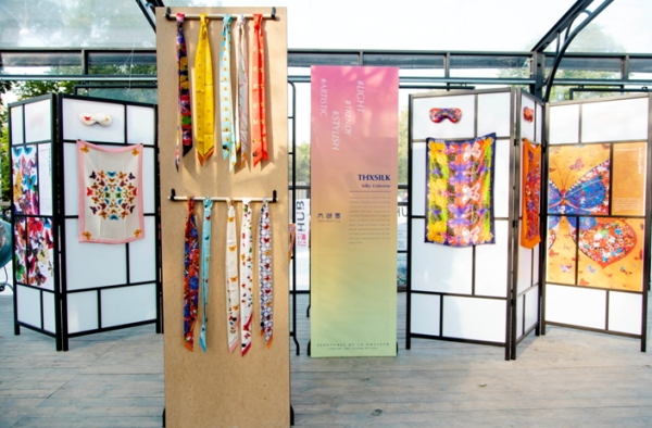 據(jù)了解,此次太湖雪用蠶絲來勾勒拉赫優(yōu)作品《蝴蝶飛》《蝴蝶之王》,用絲綢的特殊屬性重塑藝術(shù)作品中溫柔的顏色和光影,刷新在現(xiàn)代消費環(huán)境中大眾對絲綢的審美視角,是絲綢和色彩的碰撞,是東方和西方的融匯。