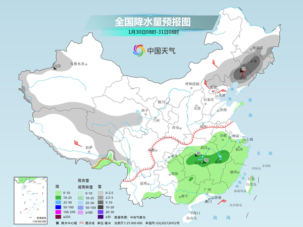 今天(1月30日),南方陰雨范圍較大,東北部分地區(qū)有較強(qiáng)降雪。明天起至2月5日,中東部地區(qū)將出現(xiàn)入冬以來(lái)持續(xù)時(shí)間最長(zhǎng)、影響范圍最廣的雨雪天氣過(guò)程,河南、山東、湖北等地降雪具有極端性,同時(shí)大部地區(qū)氣溫也將明顯下降,正值節(jié)前春運(yùn)高峰,公眾請(qǐng)合理安排出行計(jì)劃。