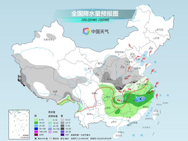 今天,南方大范圍陰雨天氣持續(xù),東北地區(qū)中南部有較強(qiáng)降雪。明天起至2月5日,中東部地區(qū)將出現(xiàn)入冬以來(lái)持續(xù)時(shí)間最長(zhǎng)、影響范圍最廣的雨雪天氣過(guò)程,局地有大暴雪或特大暴雪;長(zhǎng)江中下游及以南部分地區(qū)有暴雨。其中,明后天,華北、黃淮等地將率先出現(xiàn)降雪。