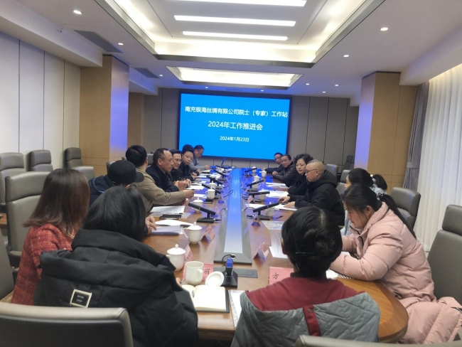 2023年1月23日,南充銀海絲綢有限公司院士(專家)工作站2024年工作推進(jìn)會(huì)在南充召開。中國絲綢協(xié)會(huì)特邀副會(huì)長、四川省絲綢協(xié)會(huì)名譽(yù)會(huì)長、銀海絲綢院士(專家)工作站首席專家陳祥平,南充市科協(xié)黨組成員、副主席尹曉輝,四川省農(nóng)業(yè)科學(xué)院蠶業(yè)研究所黨委書記張友洪,南充市科協(xié)學(xué)會(huì)部部長董媛媛,南充市嘉陵區(qū)科協(xié)副主席全國平出席會(huì)議,來自四川省絲綢科學(xué)研究院、四川省農(nóng)科院蠶業(yè)研究所以及南充銀海絲綢有限公司的專家和相關(guān)人員共20余人參加了推進(jìn)會(huì),會(huì)議由陳祥平主持。