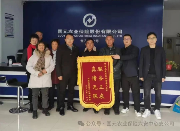 近日,安徽省金寨縣白塔畈鎮(zhèn)樓沖村八位養(yǎng)蠶戶冒著嚴寒將“服務三農(nóng)、真情無限”的錦旗送到國元農(nóng)業(yè)保險有限公司金寨支公司,對該支公司在桑蠶保險承保和理賠中優(yōu)質細致、及時周到的服務表示誠摯感謝。