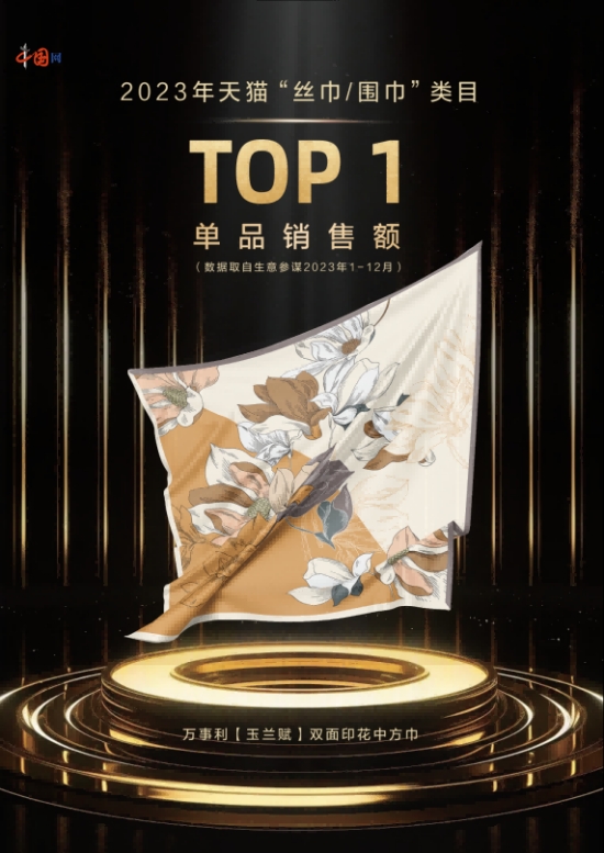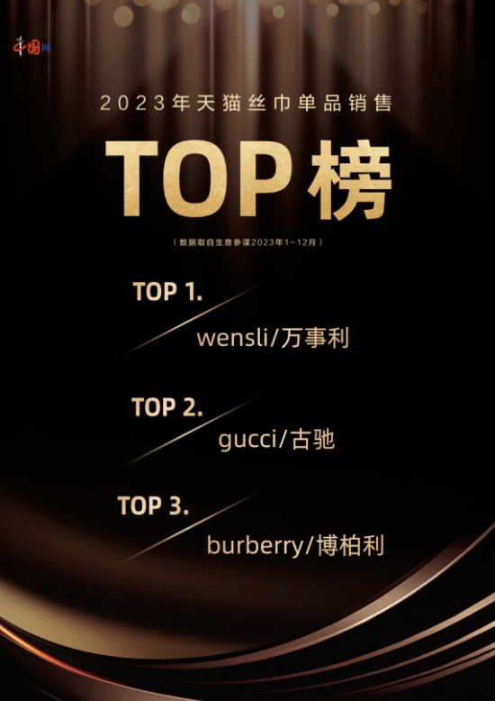 記者根據(jù)天貓生意參謀平臺公布的2023年度絲巾/圍巾類目銷售數(shù)據(jù)了解到,杭州萬事利絲綢文化股份有限公司獲得絲巾單品銷售冠軍,年銷售額超過1300萬元人民幣,超越了Gucci和Burberry兩大頂級奢侈品大牌。