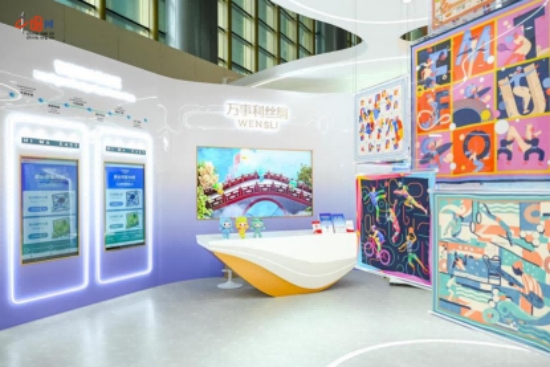 亞運期間,萬事利在主媒體中心展示AI定制+即時生產(chǎn)