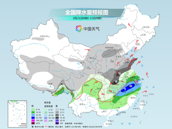 后天,內(nèi)蒙古中西部、新疆、青藏高原北部和東部、西北地區(qū)東部、華北大部、黃淮、江淮中北部、江漢、江南西部、貴州東部等地部分地區(qū)有小到中雪或雨夾雪,其中,山東東部和南部、河南中南部、蘇皖北部、湖北北部等地部分地區(qū)有大到暴雪。安徽北部、江漢、湖南中北部等地部分地區(qū)有凍雨。江淮東部和西南部、江南北部等地部分地區(qū)有中到大雨,其中,安徽南部、江西北部、浙江西部等地部分地區(qū)有暴雨。